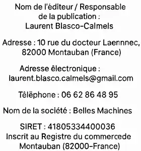 - Par courrier : Belles Machines, 10 rue du Docteur Laennec, 82000 Montauban